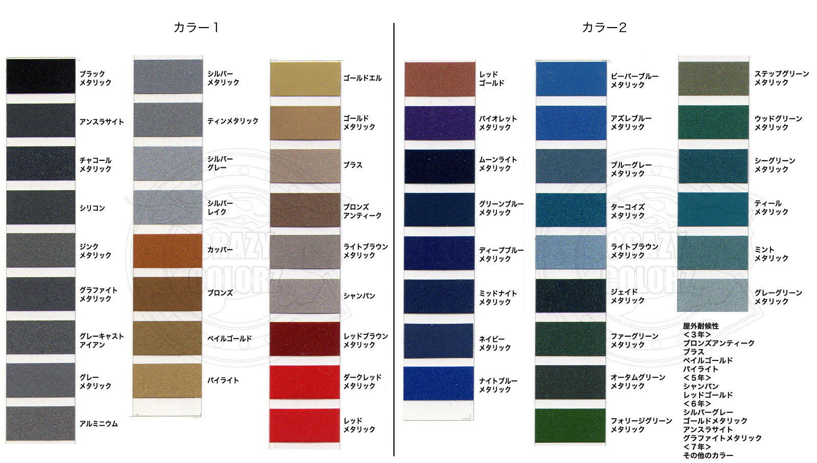 メタリック:オラカル/耐候性約3-5年