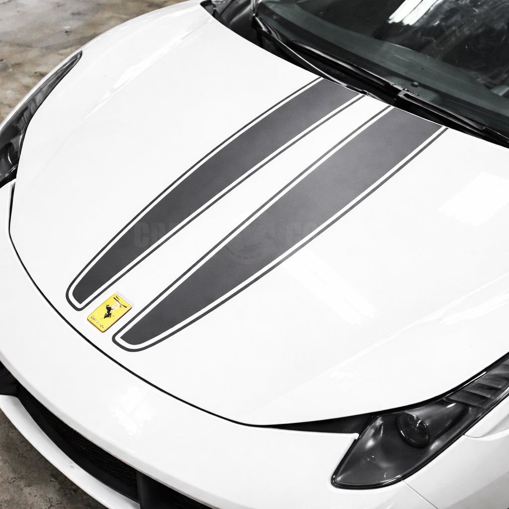 【全車種対応】フェラーリ スクーデリアスタイル フードストライプ 左右セット ボンネットデカール