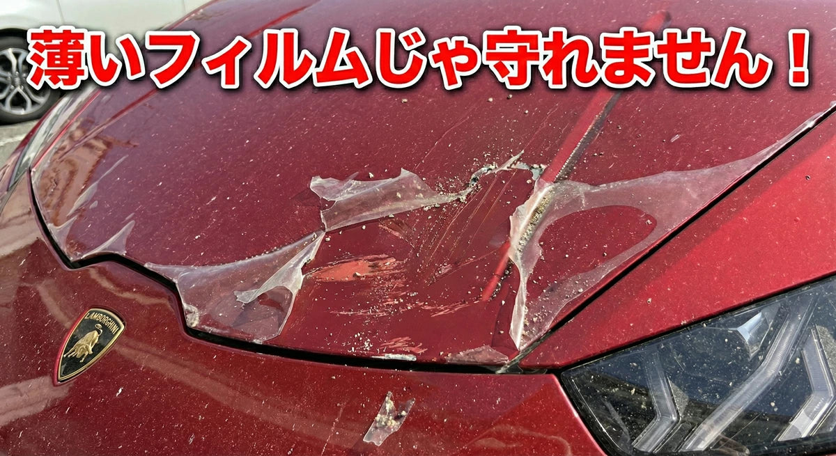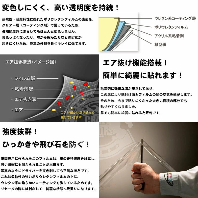 素材には、飛び石などによる塗装ダメージの軽減を目的とした3M製の自動車用保護フィルムを使用しています。